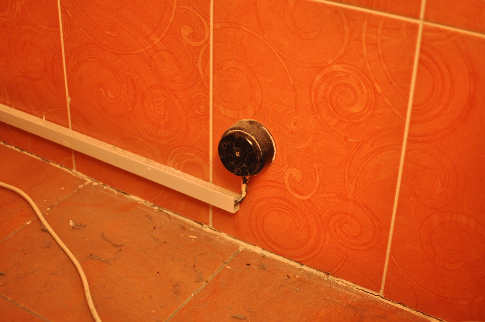 Надо подключать. Кабеля с вилкой в комплекте не оказалось. Видимо, потому что плита эта может быть подключена тремя разными способами: к одно-, двух- и трехфазной сети. У меня сеть однофазная, т.е. в розетке три разъема: фаза, ноль и земля. Отодвигаем холодильник, видим срач розетку.