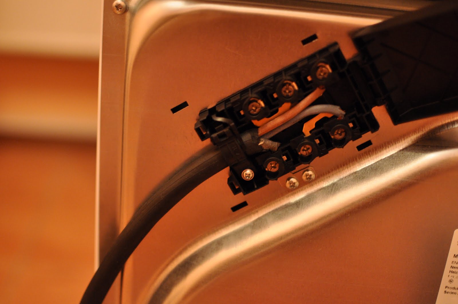 1. Первой неожиданностью были кольца на концах провода, которыми надо его втыкать в плиту. Они были очень полезны для подключения к предыдущей плите, но, если у вас коробочка питания такая же, как у автора и у меня ("Kado K 1/6" зовется), то кольца нужно отрезать и просто зачистить оскопленные концы.